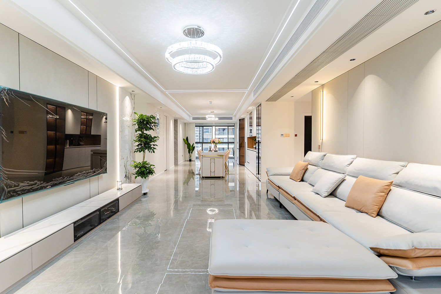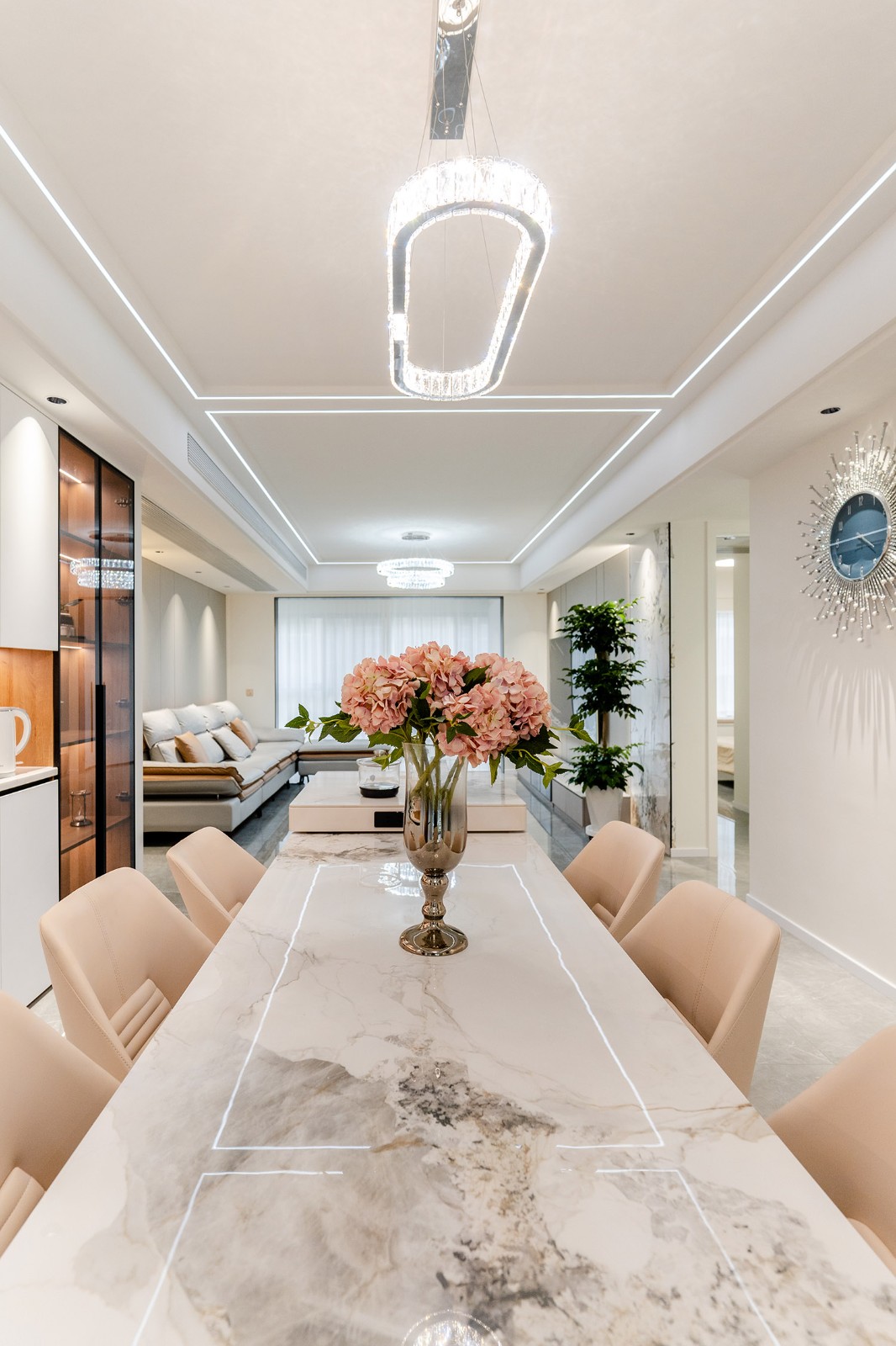 本案以“城市藝術(shù)藏品館”為設(shè)計母題,在178㎡的大平層中,用建筑思維構(gòu)筑生活場景。設(shè)計超越傳統(tǒng)輕奢的材質(zhì)堆疊,轉(zhuǎn)向空間敘事性的營造——將每個功能區(qū)域視為一個“展陳空間”,居住者的生活軌跡、情感記憶與審美偏好,成為空間中最珍貴的“藏品”。通過縱軸遞進(jìn)的儀式動線、材質(zhì)光影的戲劇化處理,打造一處兼具美術(shù)館般高級感與家庭溫度的詩意棲居。 本案的輕奢,是對空間、光影與生活方式的精細(xì)雕刻。它不再是一種風(fēng)格標(biāo)簽,而是一種生活狀態(tài)的呈現(xiàn):在理性的建筑框架中,注入感性的藝術(shù)靈魂;在克制的設(shè)計語言下,包容豐盈的日常情感。最終,這里不僅是一個家,更是一個能安放身體、精神與時光的“私人美術(shù)館”。